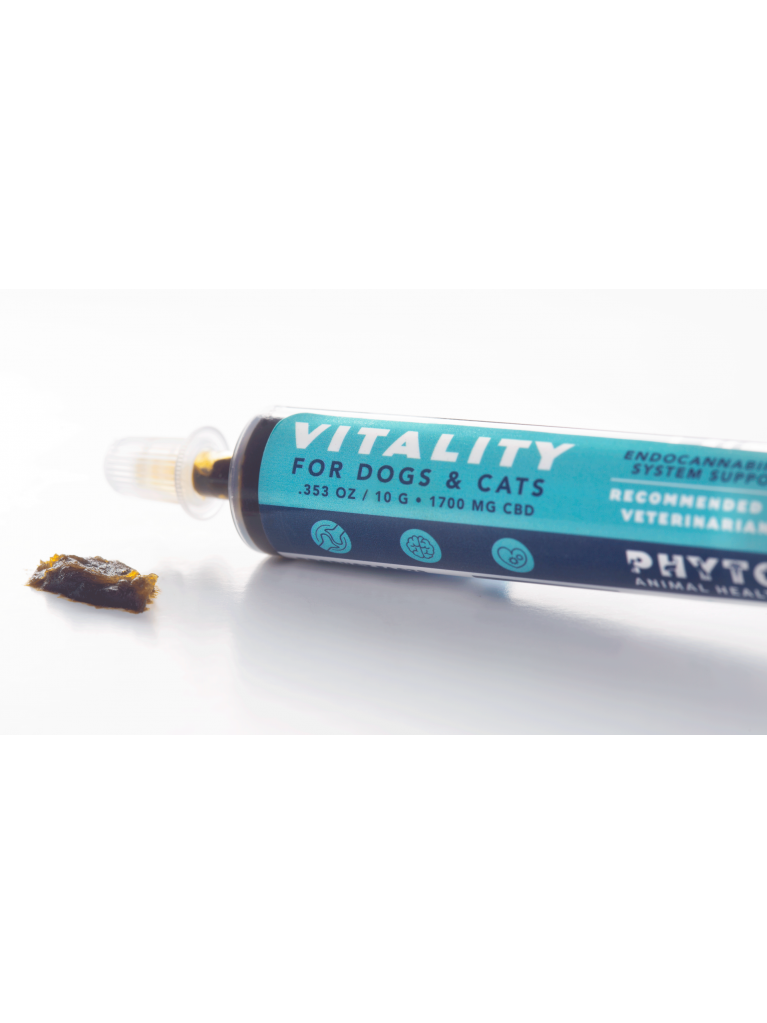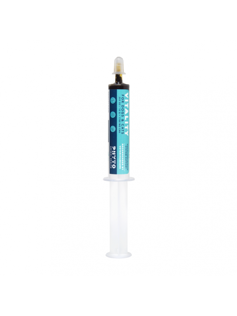 VITALITY 3G ORAL APPLICATOR Designed as an all-natural health management supplement for your pet. Furthermore, Vitality 3G Oral Concentrate contains D E C A R B O X Y L A T E D CBD in its unfiltered oil to maximize CBD content while retaining the nutritional value of raw hemp. Moreover, this award-winning full-spectrum CBD hemp oil contains 510 mg of CBD. This strain is naturally abundant in terpenes, chlorophyll, essential fatty acids, and additional natural cannabinoid compounds found in hemp. Furthermore, It comes carefully packaged in a 10g oral applicator for easy and precise measuring. VITALITY 3G ORAL APPLICATOR.